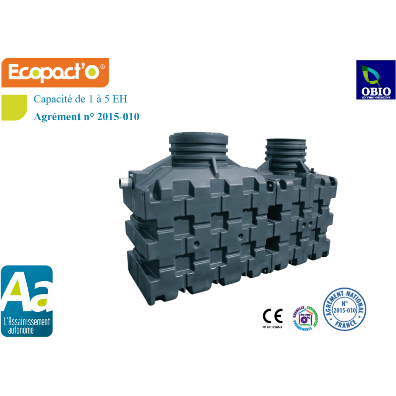 La filière ECOPACT’O est constituée d’une fosse toutes eaux et d’un filtre à laine de roche.