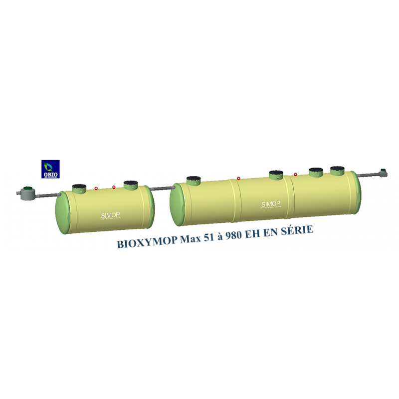 OXYMOP - 51 à 980 EH - Station d’épuration monobloc en PRV - avec décanteur primaire intégré - culture fixée sur lit fluidisé (IFAS)