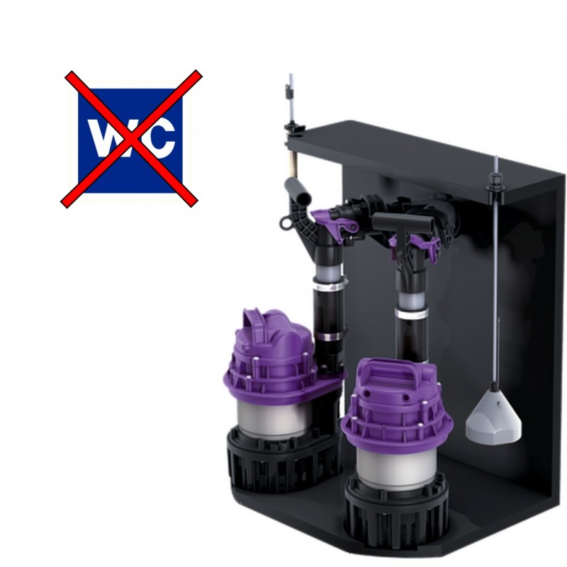 Installation double pour eaux grises (eaux usées - sans matières fécales et eaux pluviales ) avec un gestionnaire Comfort pour le montage dans des regards existants avec :
