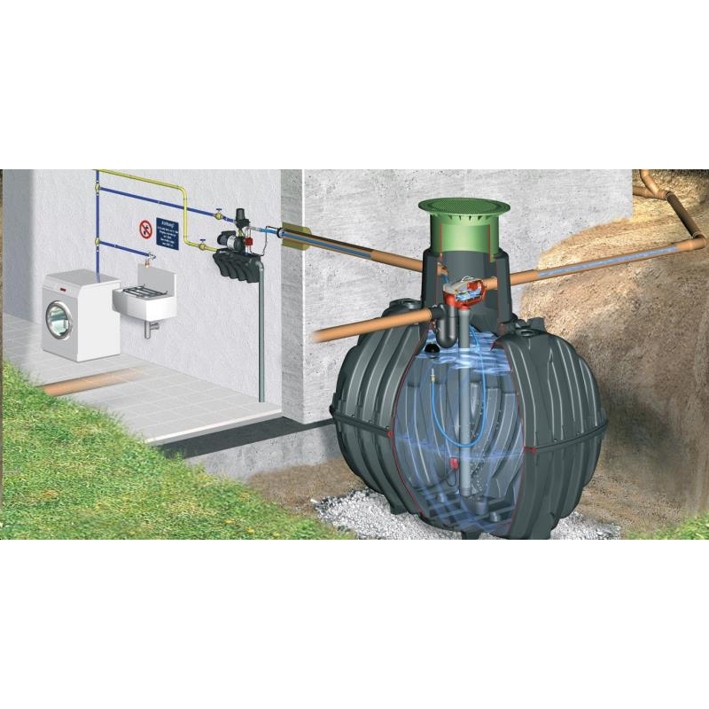 Système de filtration breveté intégré à la cuve - Basculement automatique de l'eau du réseau vers l'eau de pluie, et inversement - Un seul couvercle apparent en surface - La solution économique pour une utilisation habitat.