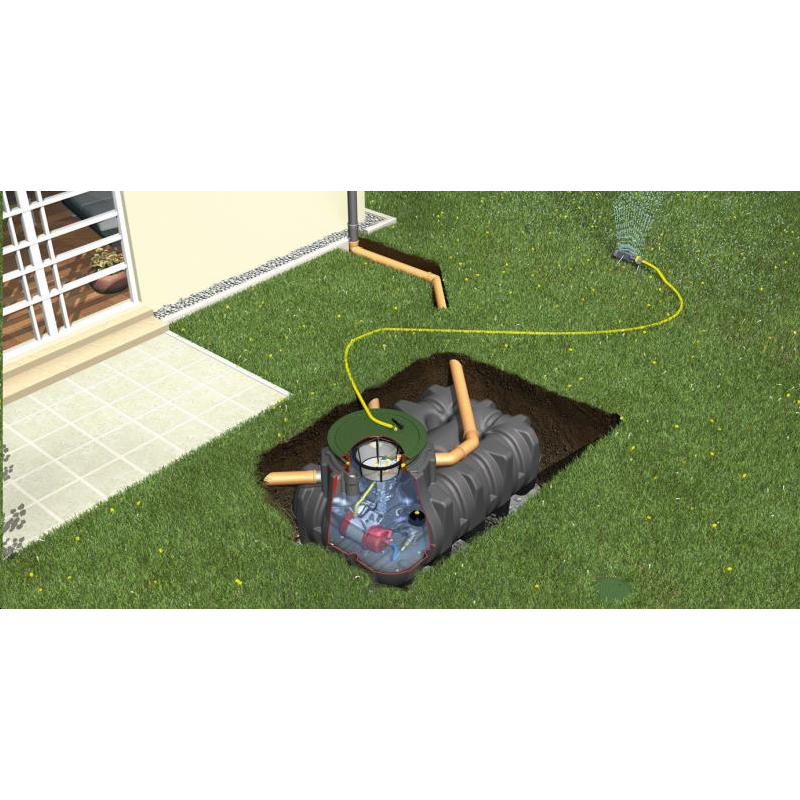 Filtre intégré à la cuve (pouvoir de récupération de 100 %). Prélèvement de l'eau facilité grâce au regard de raccordement.