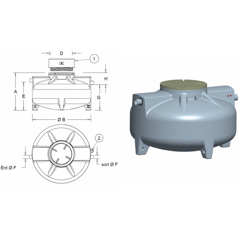 (Volume débourbeur : 205 L - Volume séparateur : 509 L)